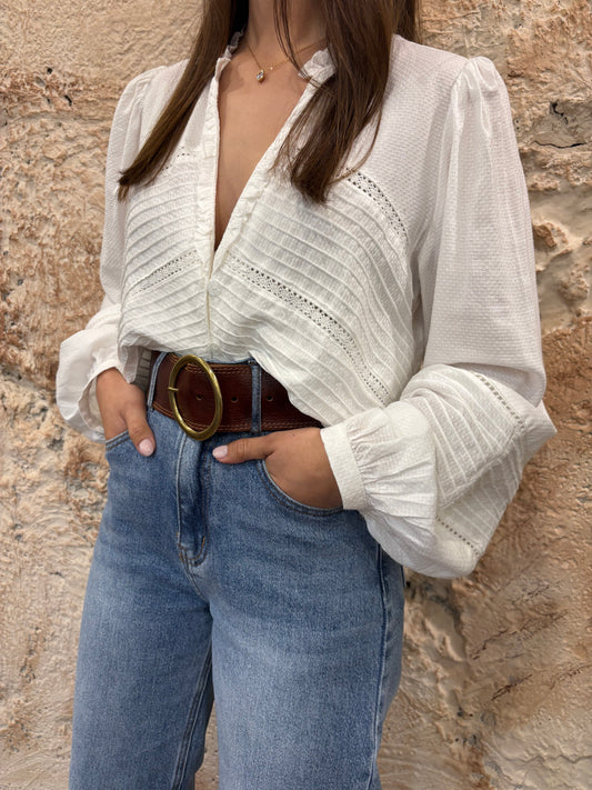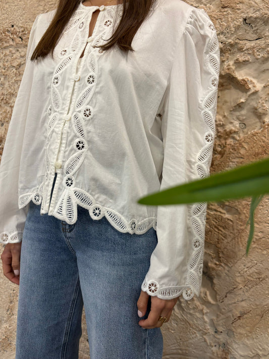 BLUSA ABOTONADA DETALLE CALADO BLANCO