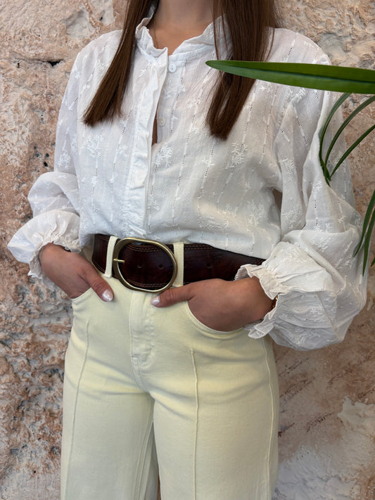 CAMISA OVERSIZE OXFORD RAYAS AMARILLO PASTEL