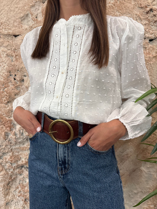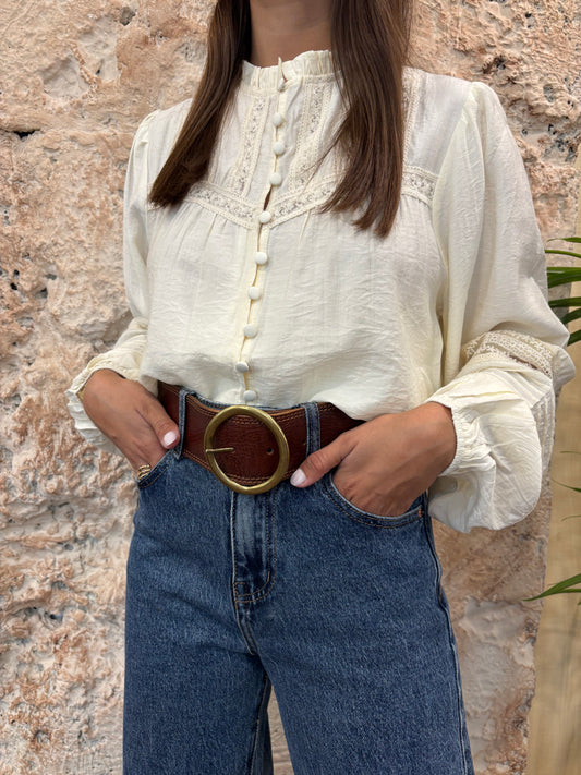 BLUSA CRUDA CUELLO RIZO PUNTILLAS