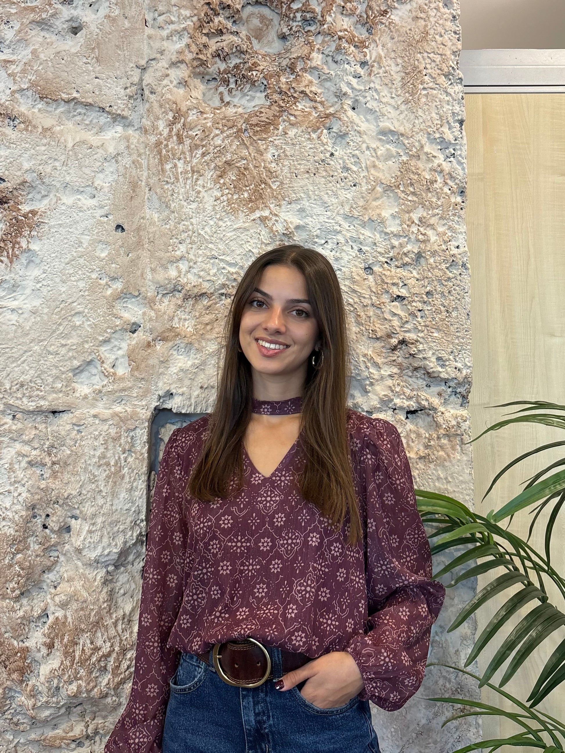 BLUSA CUELLO HALTER ESTAMPADO MORADO-NUDE
