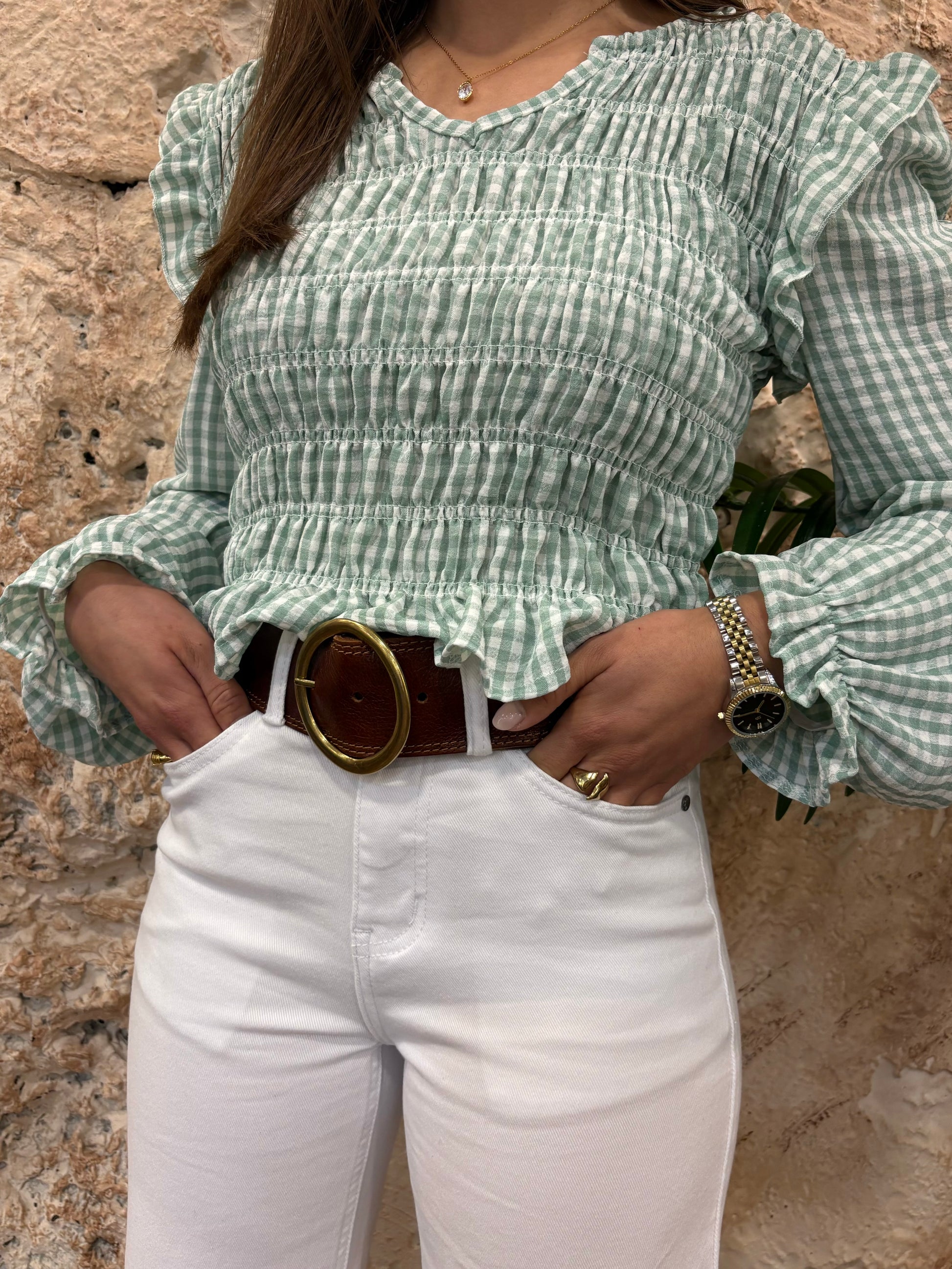 BLUSA PANEL DE ABEJA VICHY VERDE