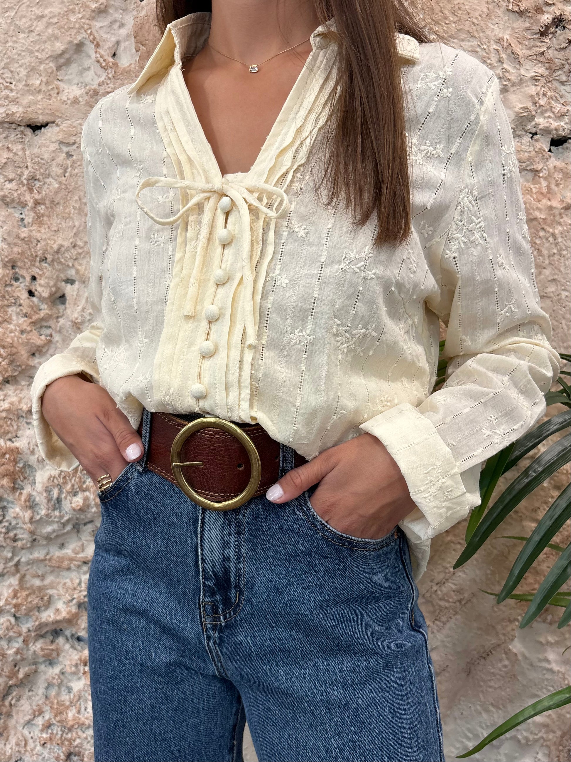 CAMISA ESTAMPADA CUELLO PUNTILLA VERDE