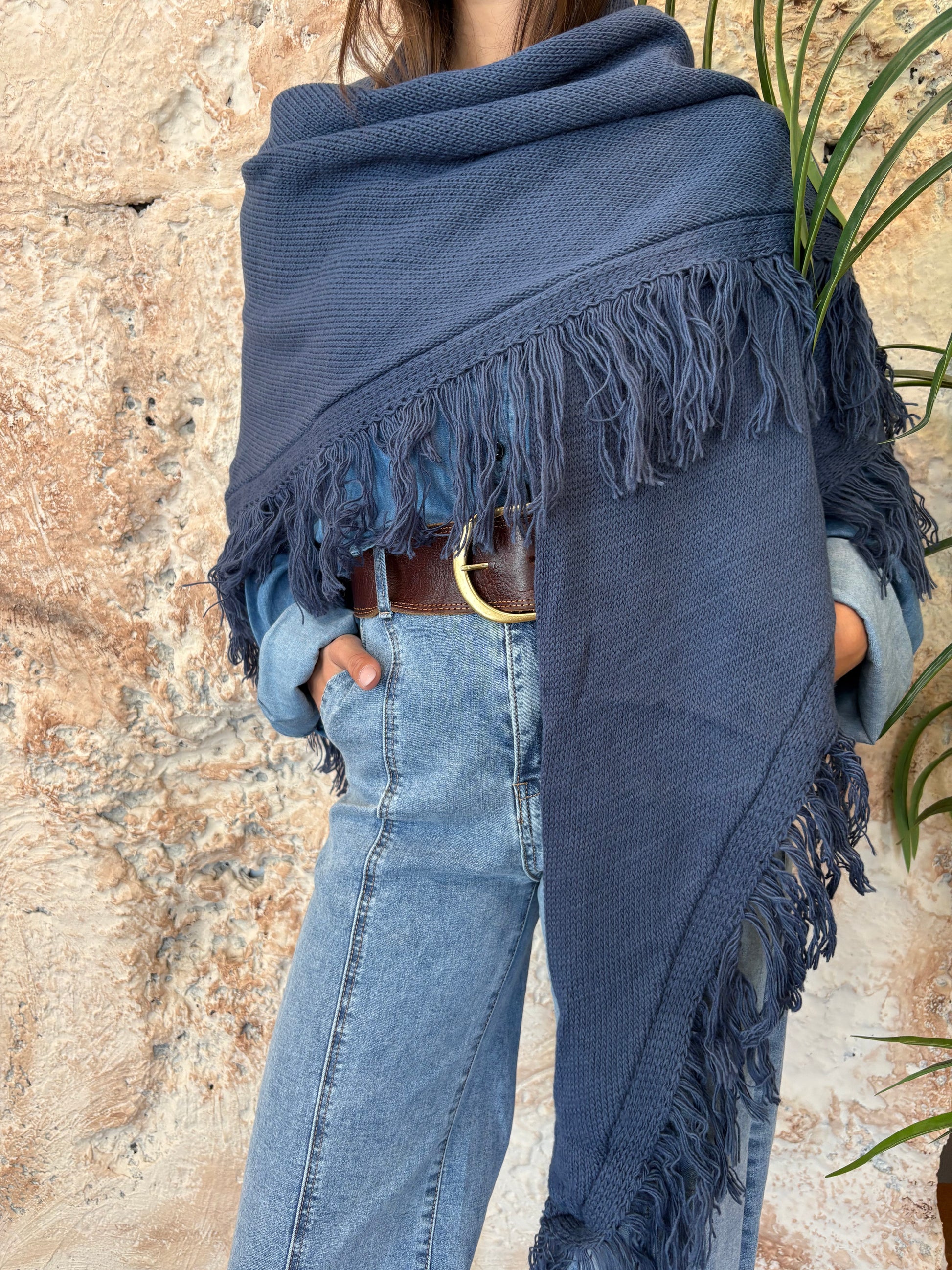 PAÑUELO AZUL DETALLES BURDEOS