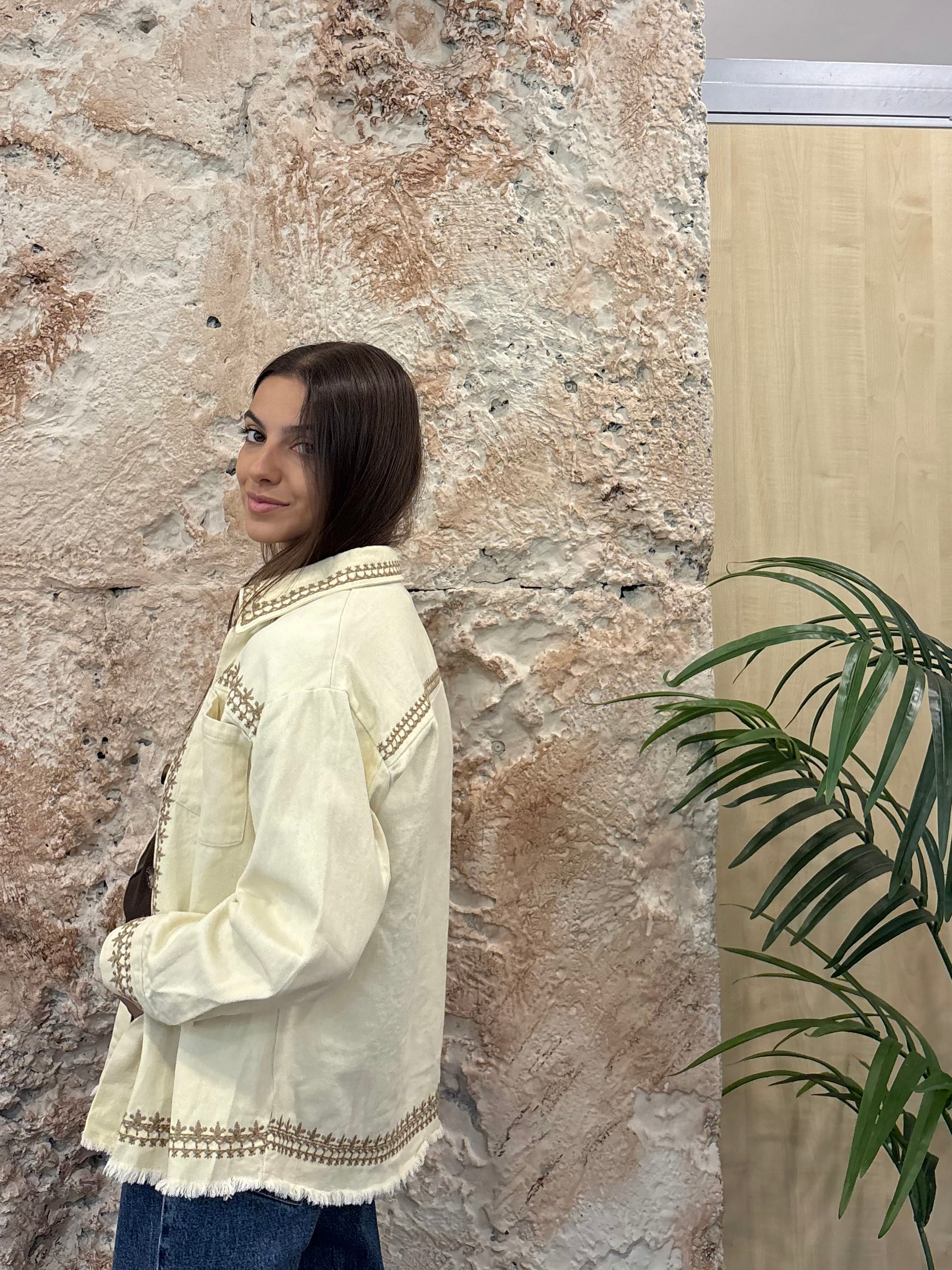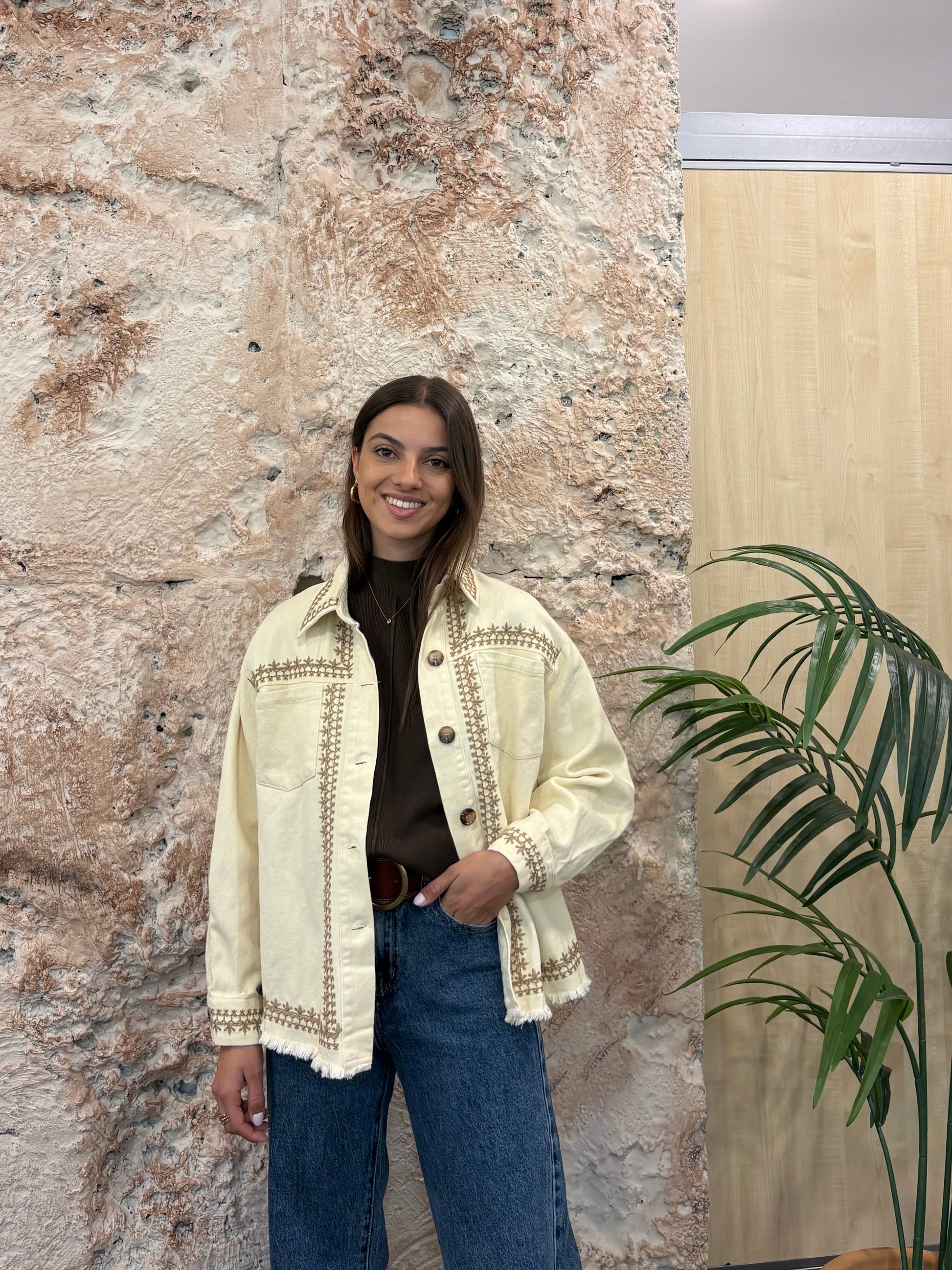 CAZADORA DENIM BEIGE BORDADOS