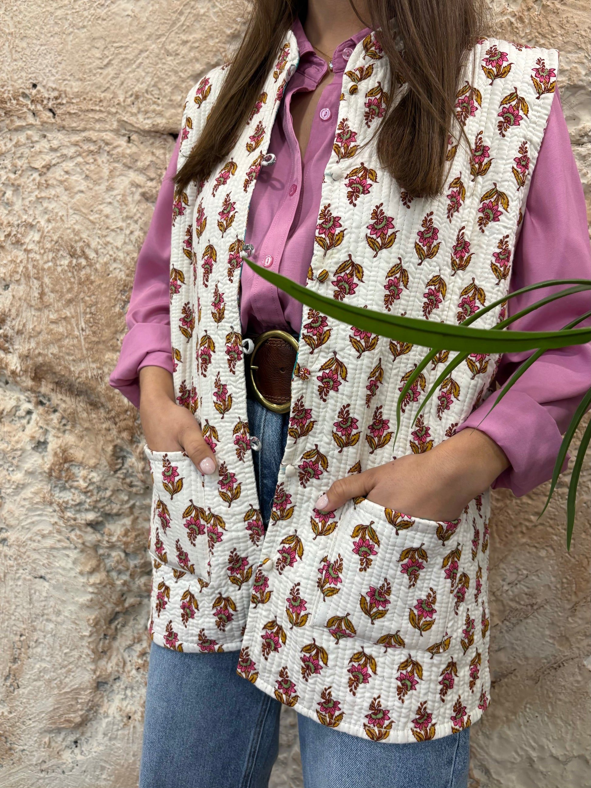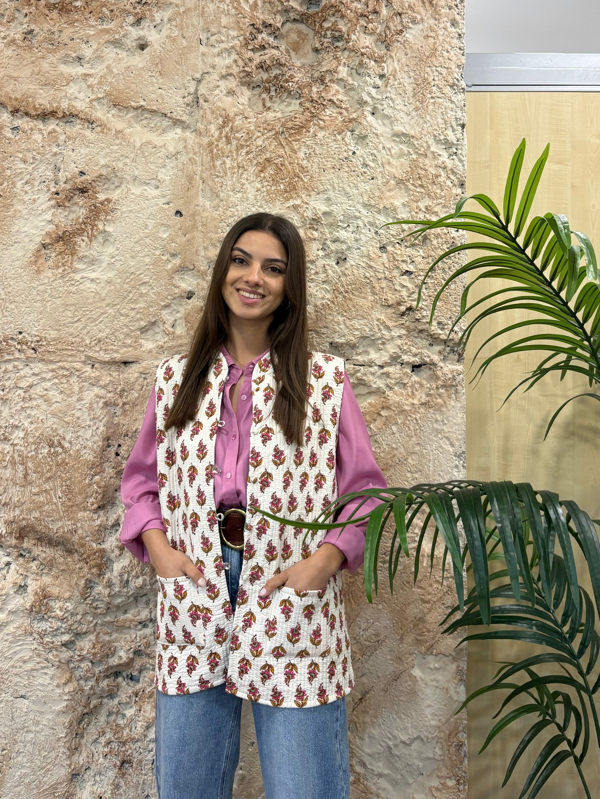 CHALECO ACOLCHADO ESTAMPADO CRUDO-ROSA