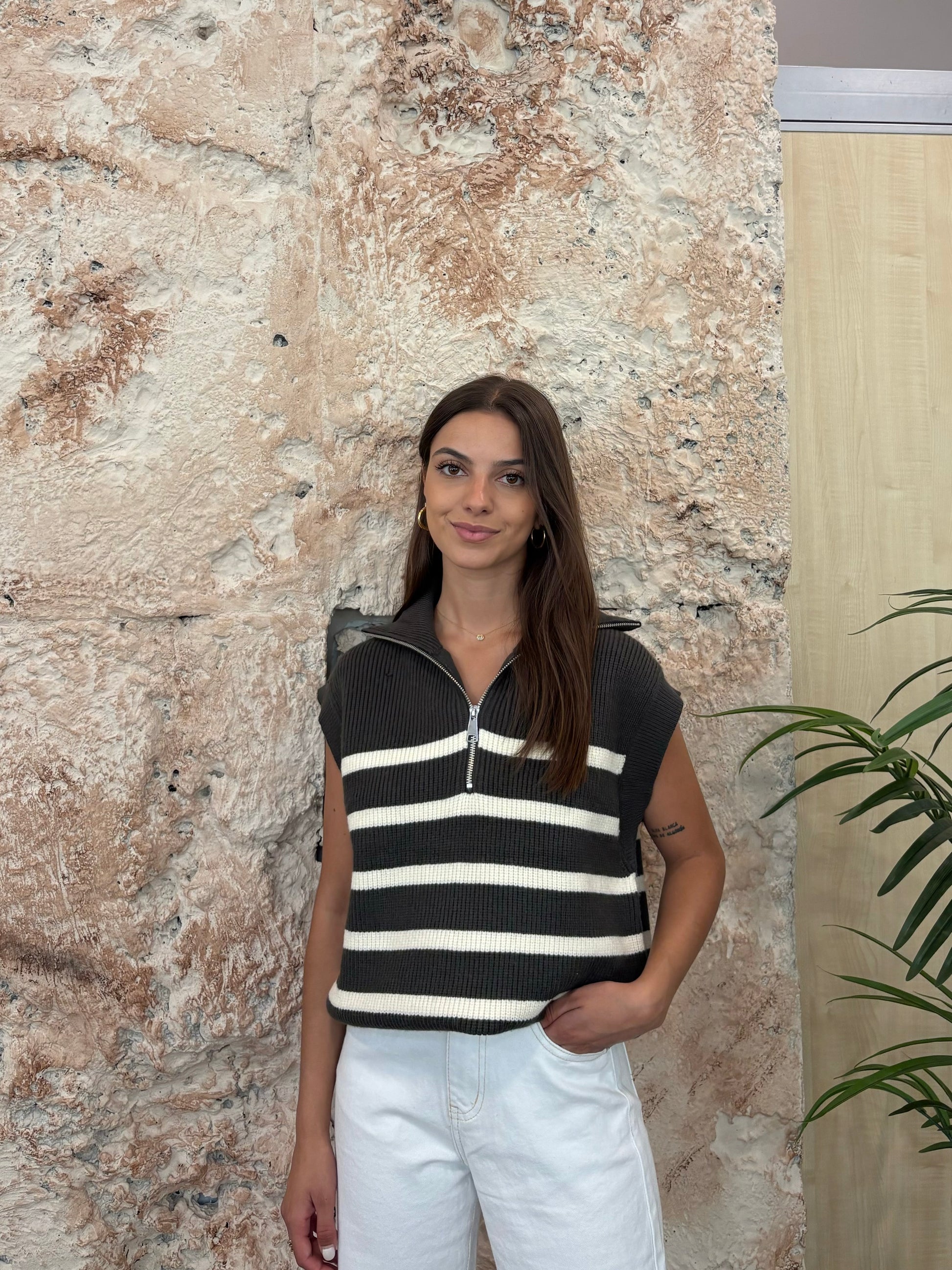 CHALECO CREMALLERA PUNTO VERDE RAYAS