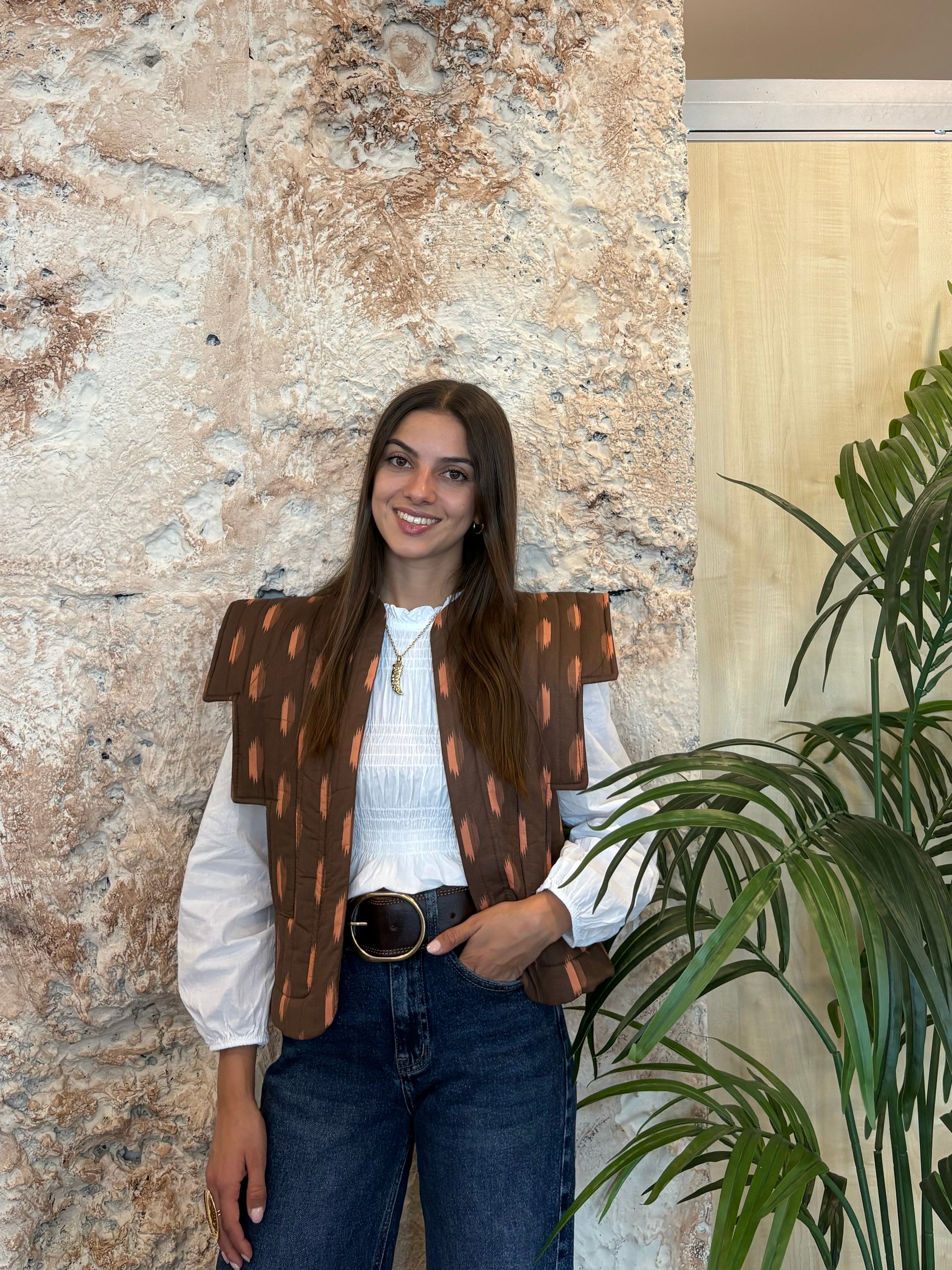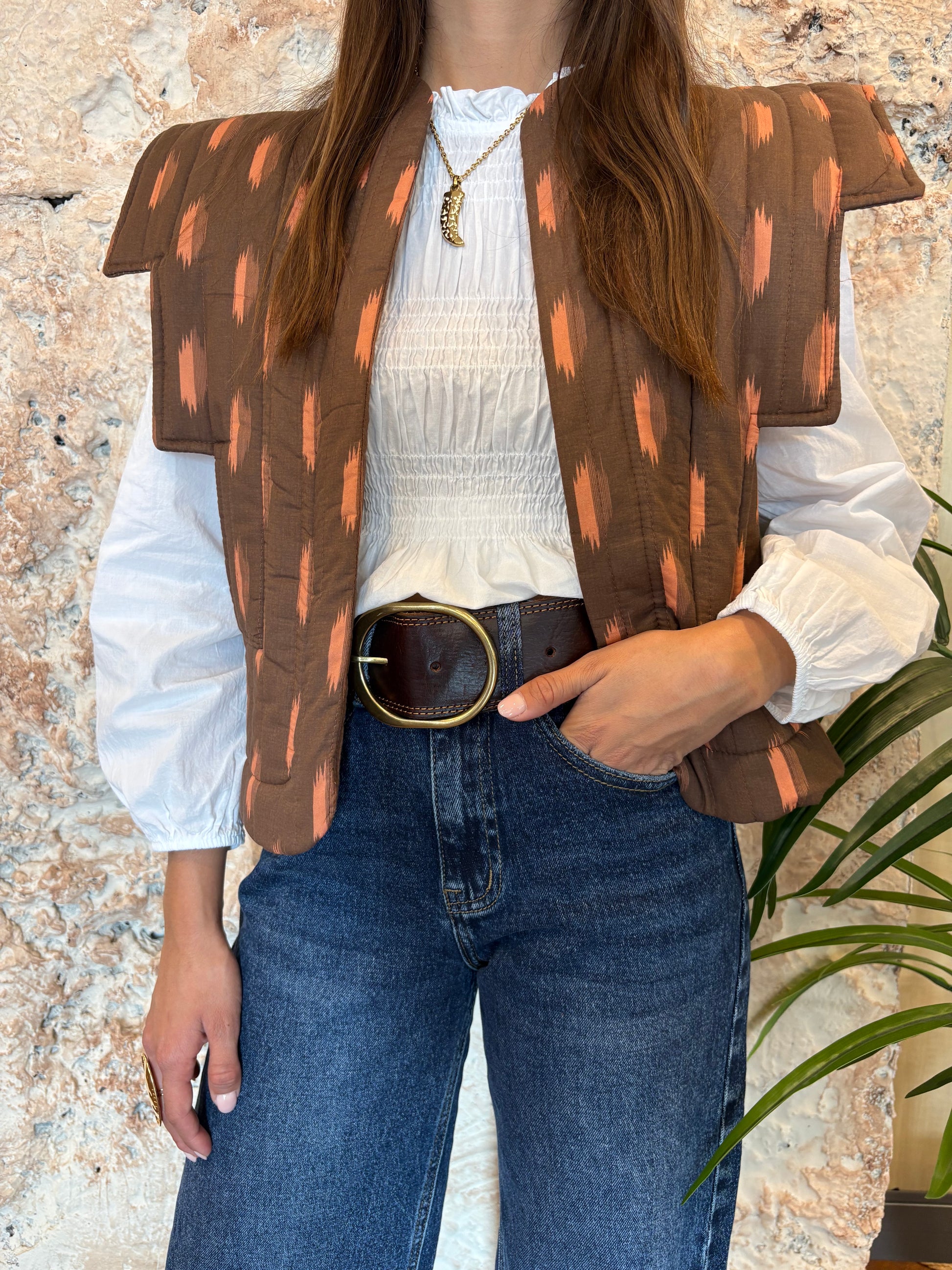 CHALECO ACOLCHADO ESTAMPADO MARRÓN-NARANJA