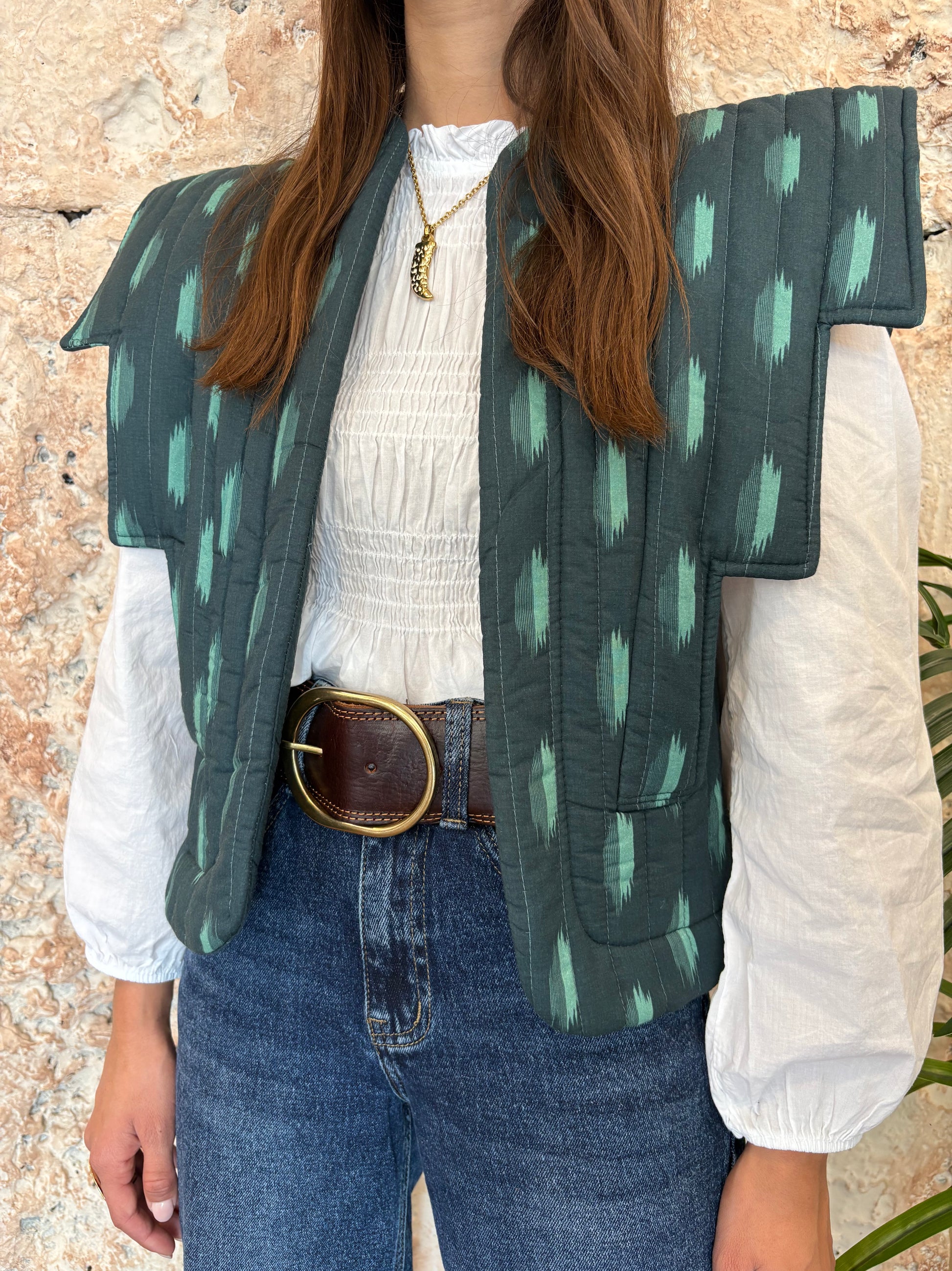 CHALECO ACOLCHADO ESTAMPADO VERDE-PETROLEO
