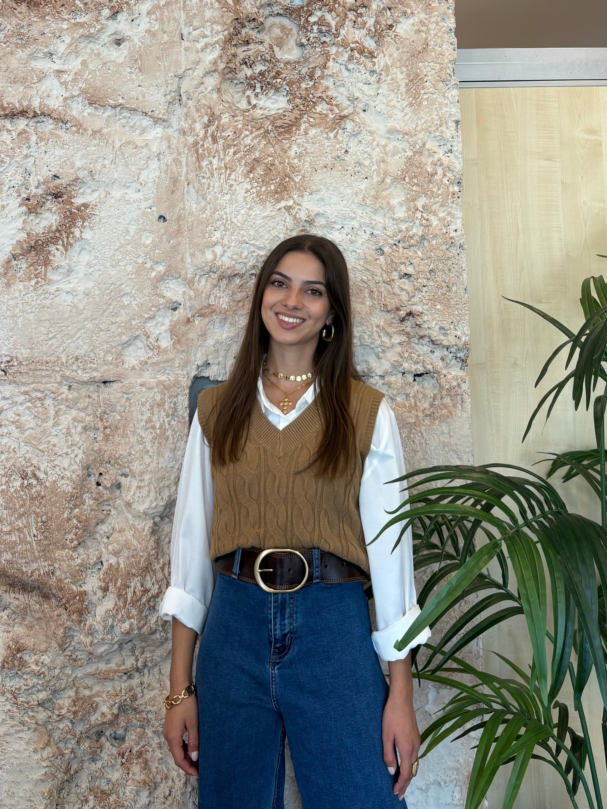 CHALECO TRENZADO CAMEL