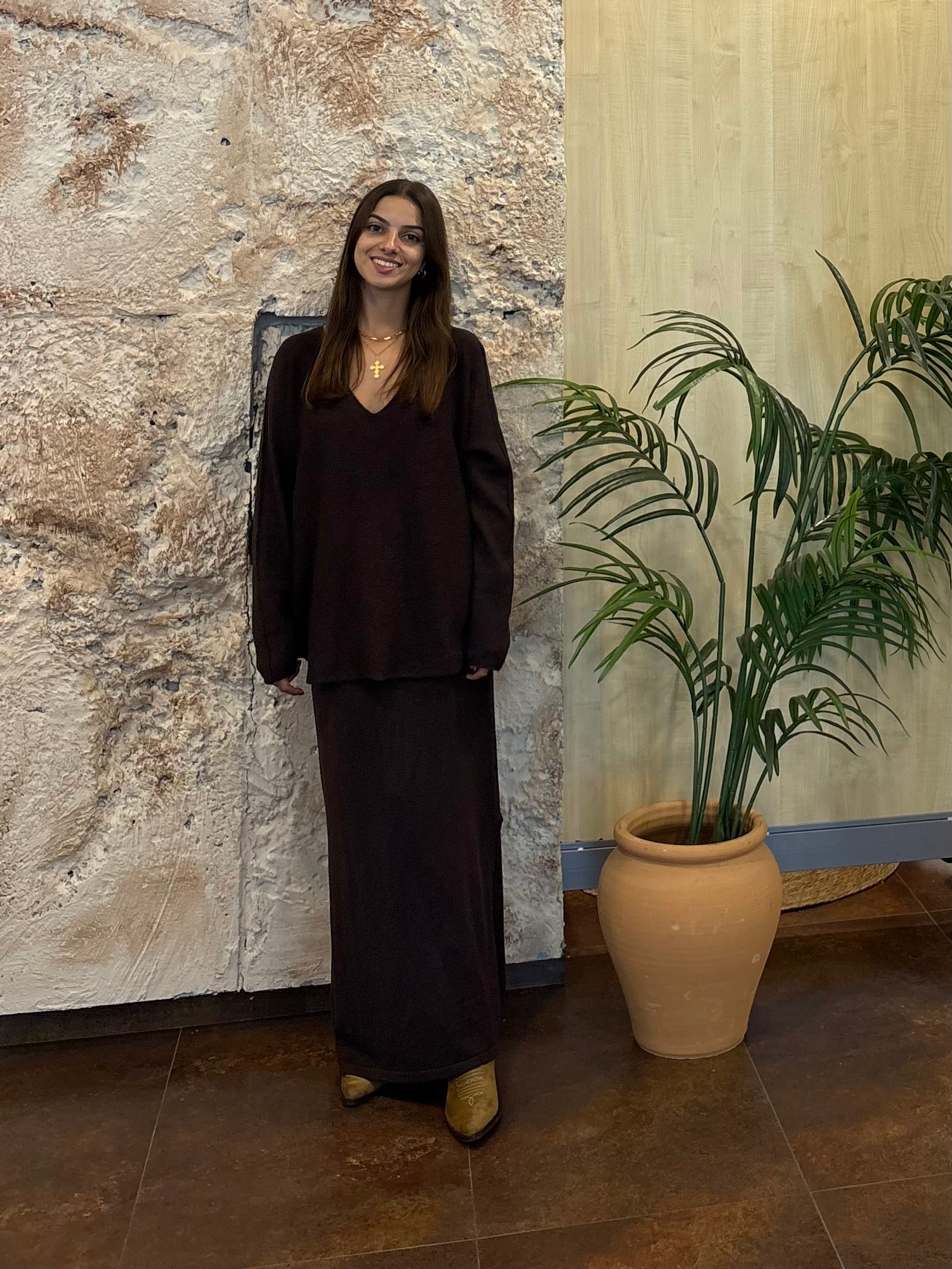 CONJUNTO PUNTO FALDA MARRÓN