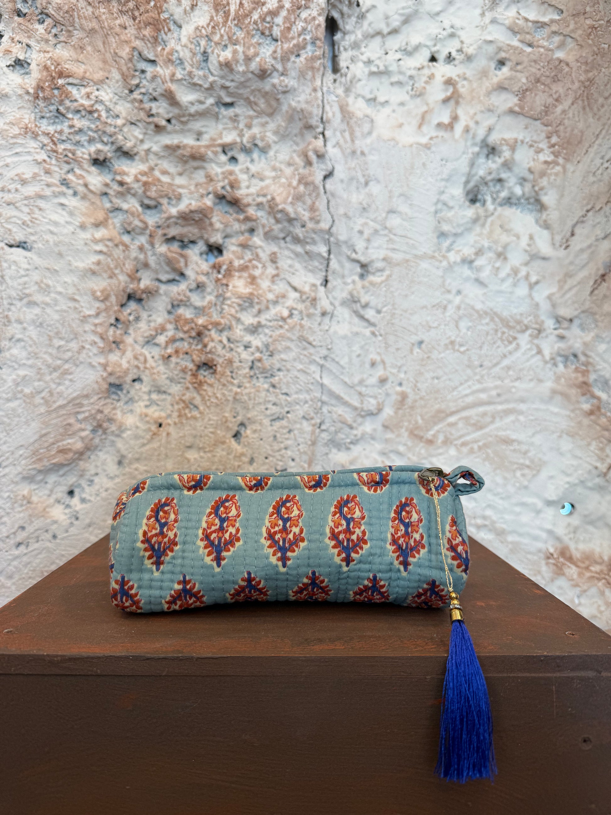 ESTUCHE PEQUEÑO AZUL EMPOLVADO CON FLORES ROSAS
