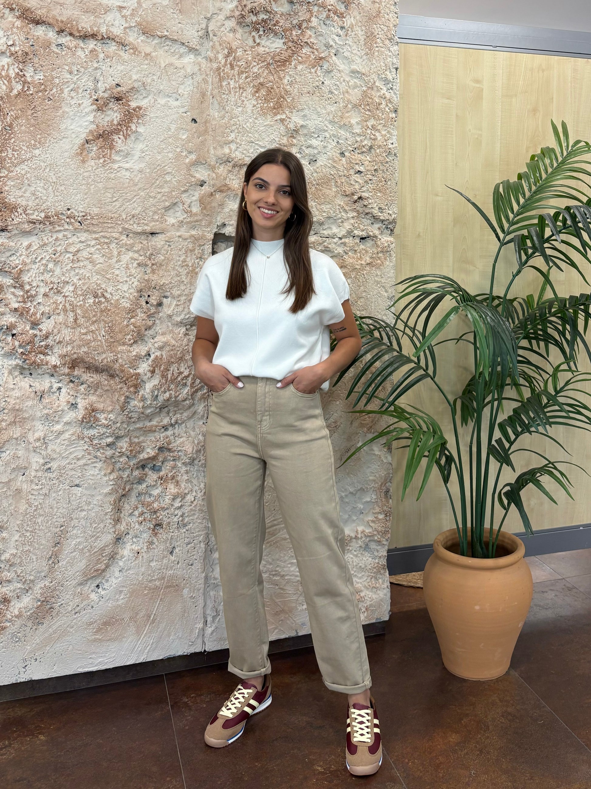 JEANS MOM FIT BEIGE