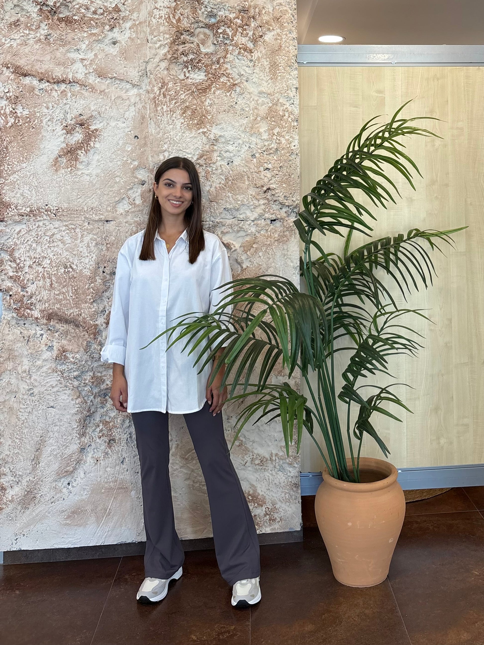 Carolina mide 156 cm de altura, 84 cm de contorno de pecho, 64 cm de cintura y 90 cm de contorno de cadera.