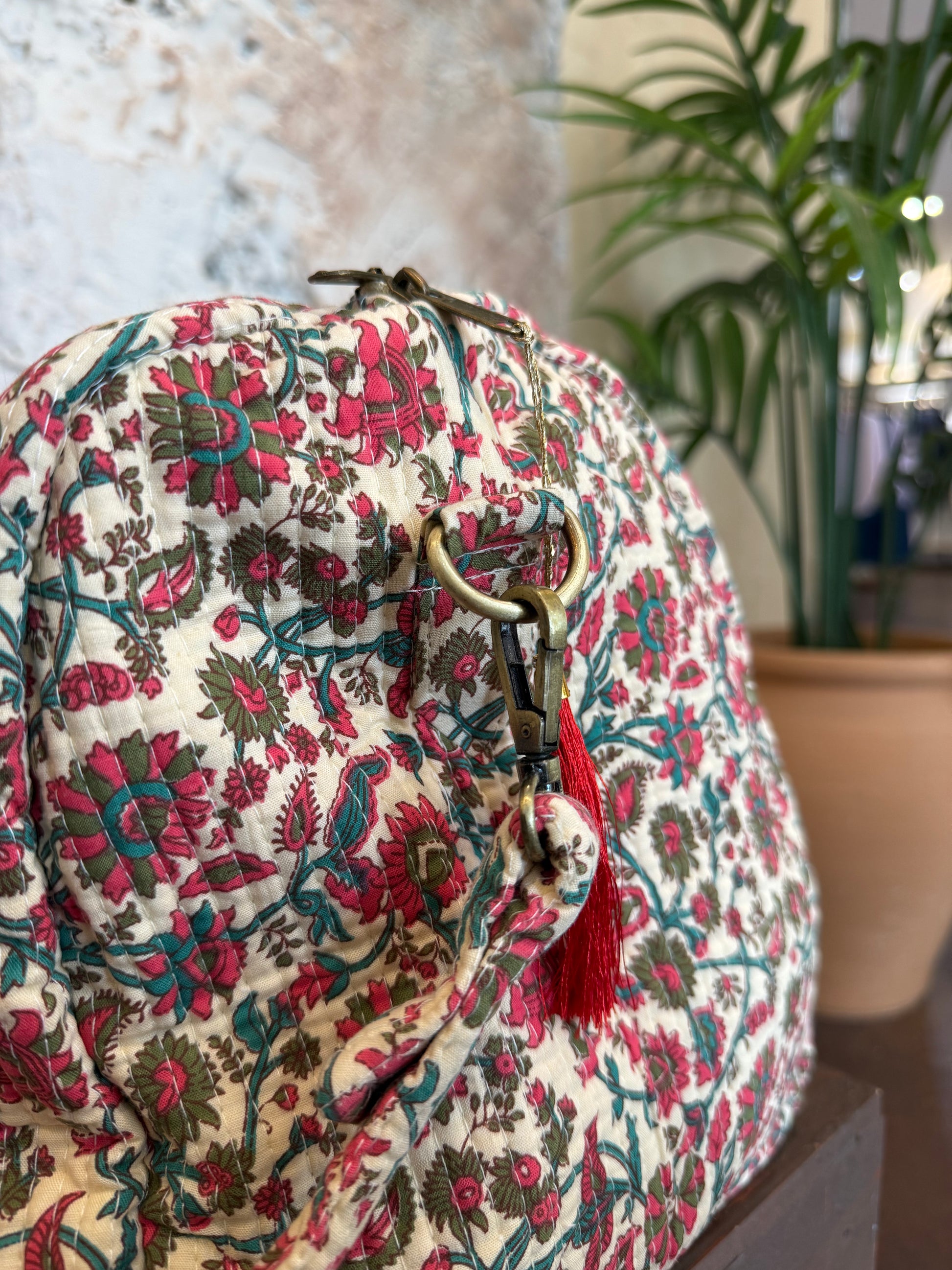 BOLSO VIAJE BEIGE CON FLORES ROSAS