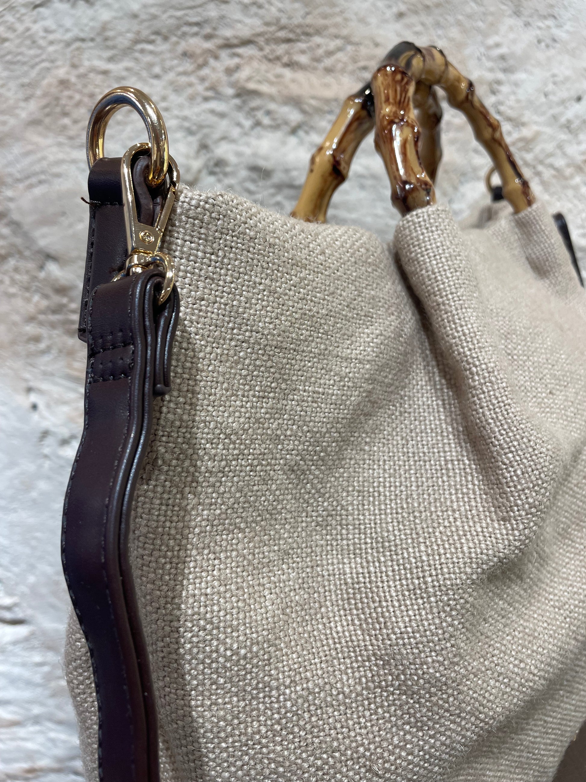 BOLSO EFECTO LINO ASA BAMBÚ